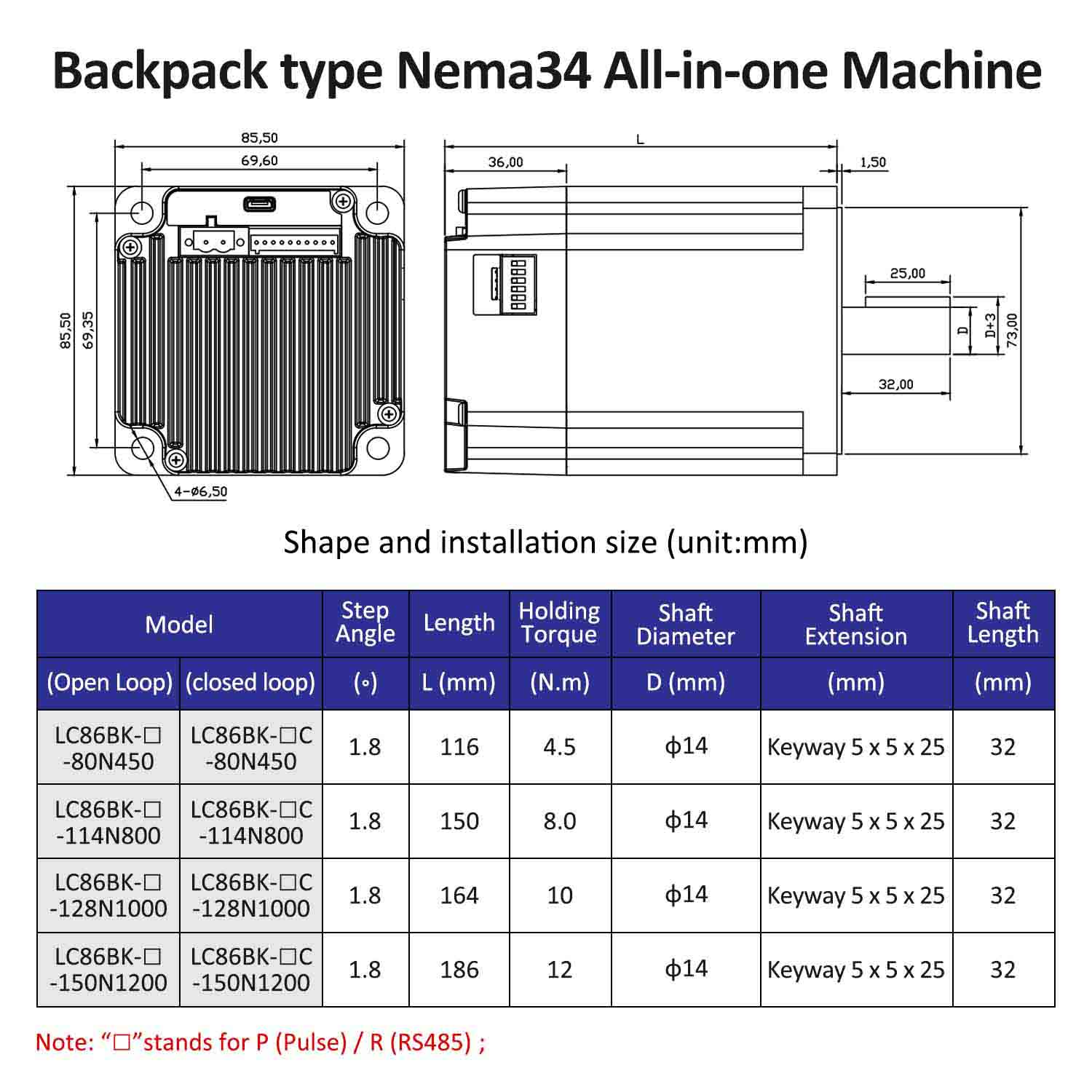 Kit Pemacu Motor Servo AC Lichuan A8 Ketepatan Tinggi STO ABZ 600W 1.91N.m 220V 3.3A 3000RPM IP65Jenis Backpack NEMA34 Open Loop-Closed Loop Integrated Stepper Motor mempunyai gelung terbuka/tertutup. Yang mempunyai kawalan nadi/rs485. Pulse/RS485 Program Pemprosesan Penggera All-in-One. Operasi yang stabil dengan lownoise dan kenaikan suhu, tiada langkah kehilangan langkah. Sistem Stepper All-in-One-Saving Saving memudahkan pemasangan.Flange Saiz: 86 mm. Sudut Langkah: 1.8 Sudut Langkah. Memegang tork 4.5/8.0/10/12n.m. Resolusi Encoder (PPR): Buka Gelung: Tiada / Loop Tertutup: 1000ppr. Julat Kuasa: DC24 ~ 90V atau AC30 ~ 60V/Voltan yang dicadangkan: DC48V/Kuasa Bekalan Kuasa: ≥250W. Kami adalah kilang asal, kami mempunyai CE, sijil ROHS.