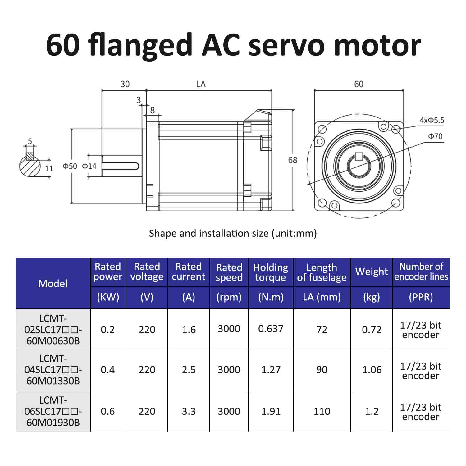 | Moddel Motor | LCMT-02SLC17-60M00630B | LCMT-04SLC17-60M01330B | LCMT-06SLC17-60M01930B |