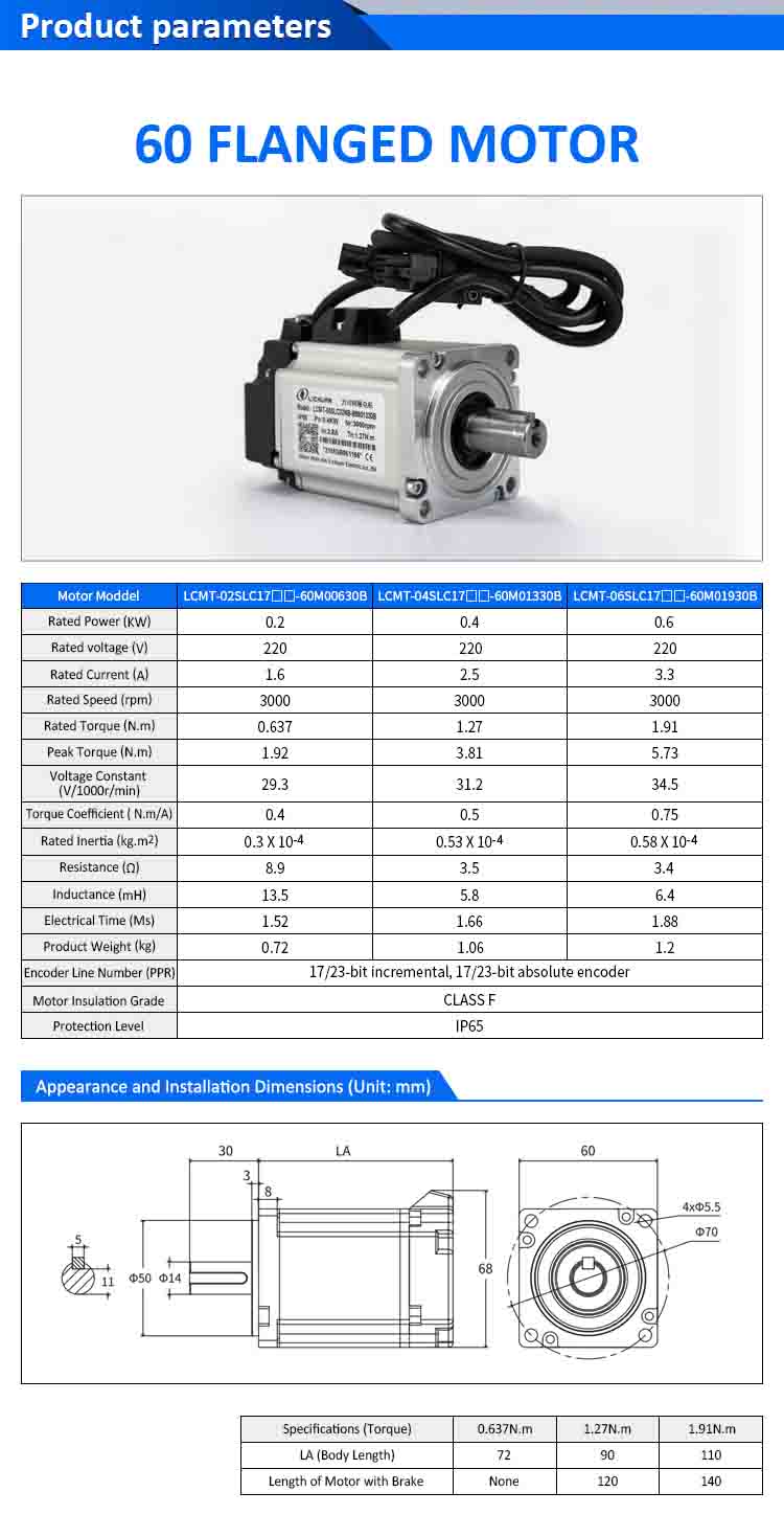| Moddel Motor | LCMT-02SLC17-60M00630B | LCMT-04SLC17-60M01330B | LCMT-06SLC17-60M01930B |